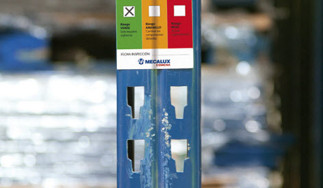 Tijdens de keuringen uitgevoerd door Mecalux zal de algemene staat van de stellingen gecontroleerd worden en zullen delen die eventueel beschadigd zijn geïdentificeerd worden aan de hand van controle stickers.