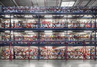 Platforms voor industriële opslag kunnen worden geïnstalleerd als afzonderlijke opslagsystemen of als onderdeel van een totaal opslagsysteem met automatische elementen zoals transportbanen voor magazijnbakken. Deze lopen door de verschillende niveaus van het magazijn en eindigen op het lagere niveau, bij de consolidatie- en verzendzone.