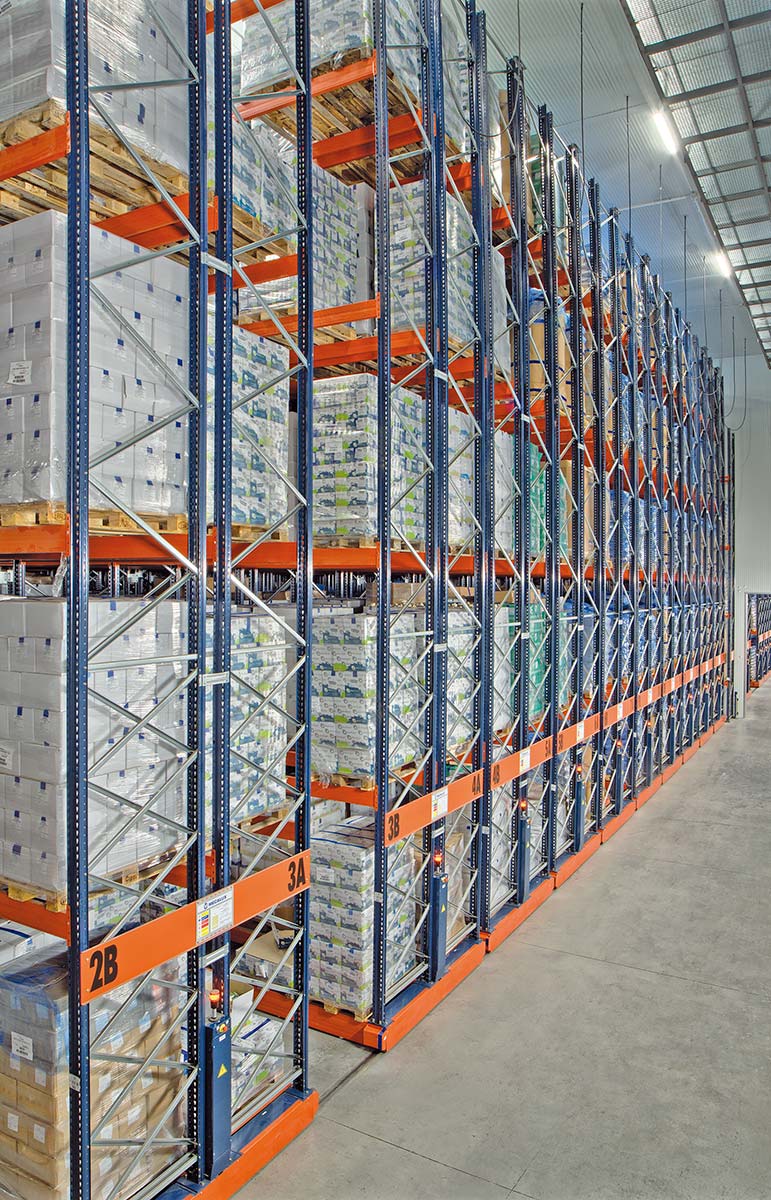 Met het Movirack systeem van Mecalux wordt het volume maximaal benut. De stellingblokken kunnen immers worden samengevoegd of gescheiden telkens wanneer er zich een gangpad moet openen.
